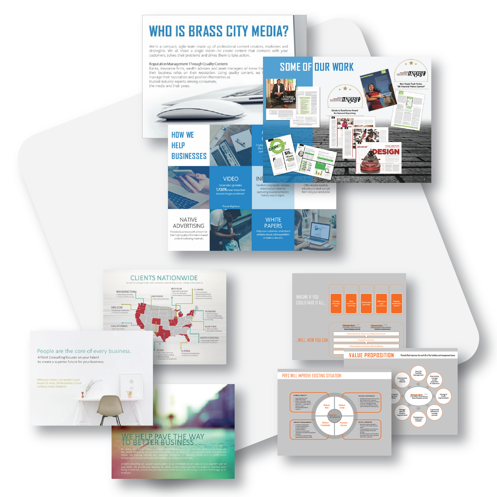 (Slide Types May Include Title, Summary or Overview, Problem/Opportunity, Solution, Business Models, Market Reviews, Competition Analysis, Team Members, The Ask/Pitch, and more.)